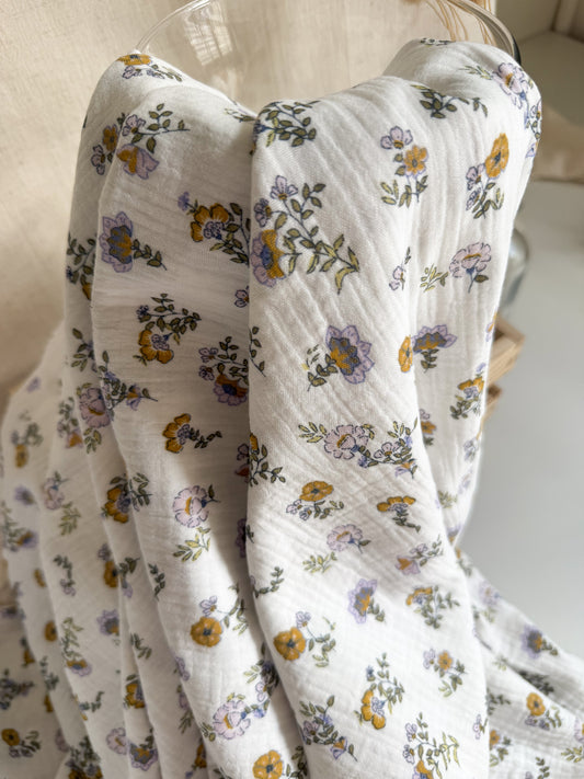 Double gauze fabric is a lightweight, soft and breathable fabric made from two fine layers of cotton gauze which are invisibly stitched together. Double Gauze fabric is a favourite of ours as it's so versatile, we love sourcing beautiful and unique prints. This fabric can be used for sewing dresses, blouses, tops, trousers, childrenswear, accessories, bibs, muslin, blankets, cot bedding, and so much more! Shop our range of plain double gauze, embroidered double gauze and printed double gauze fabrics today!