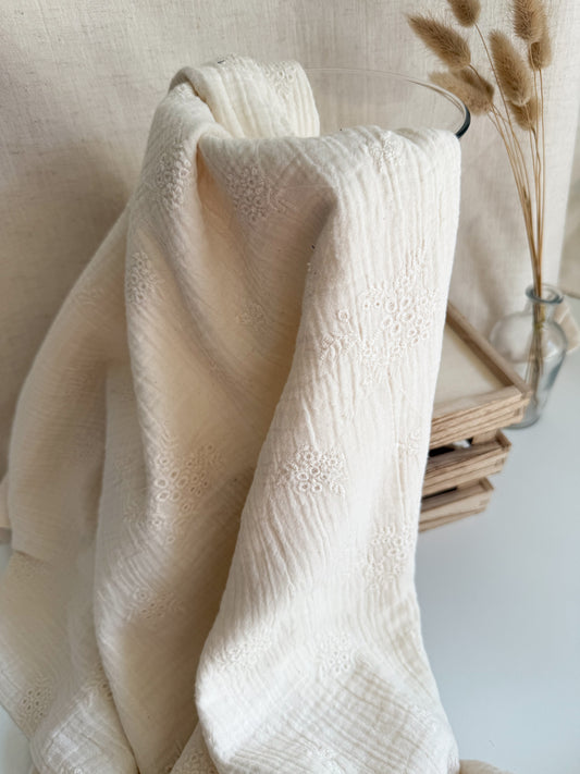 Embroidered Double Gauze Fabric - Ecru Bouquet