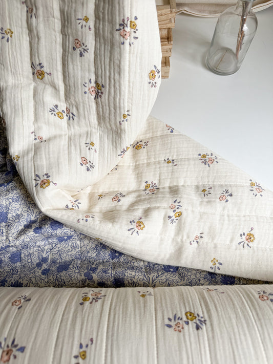 Quilted Double Gauze Fabric - Flowers / Porcelain