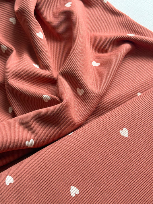 Fine Ribbed Cotton Jersey Fabric - Hearts