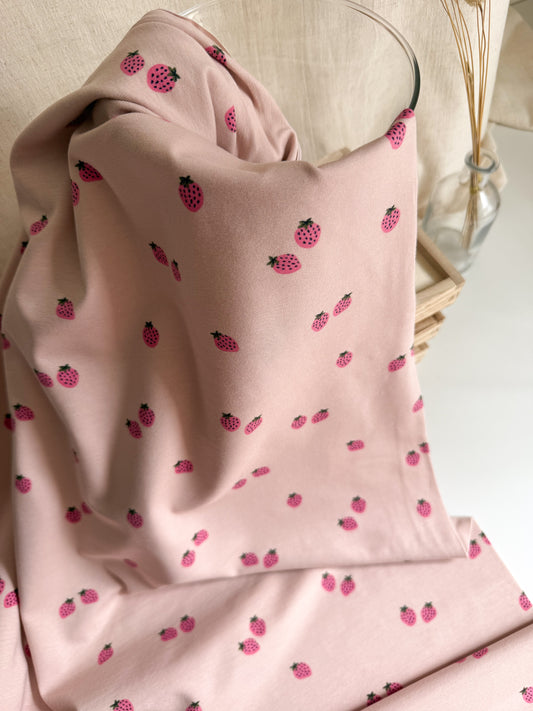 Organic Printed Cotton Jersey Fabric - Blush Strawberries