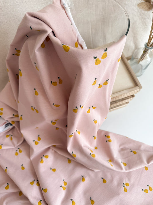 Organic Printed Cotton Jersey Fabric - Blush Pears - 50cm Remnant