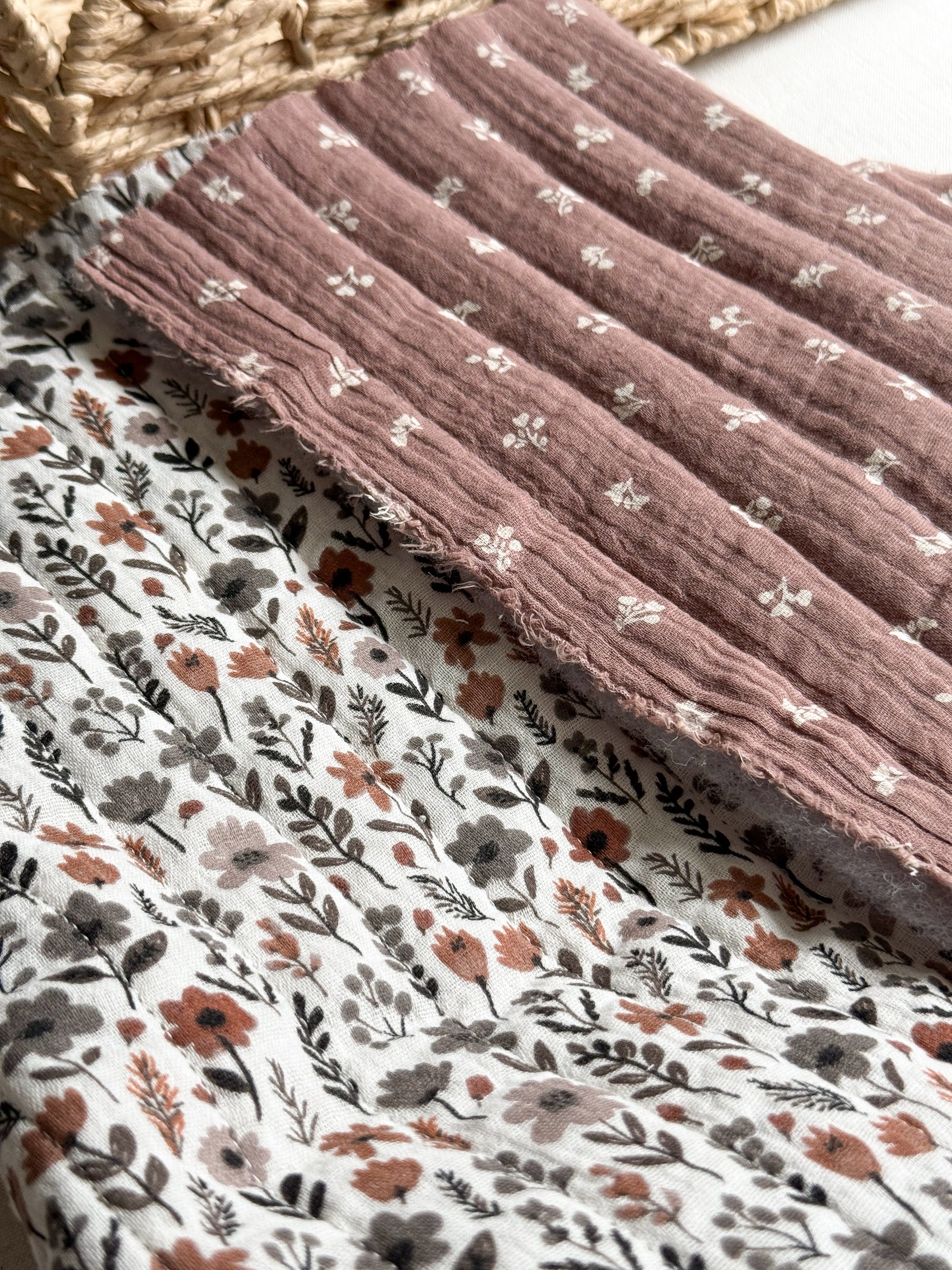 Reversible Quilted Double Gauze Fabric - Posy / Autumn Leaves